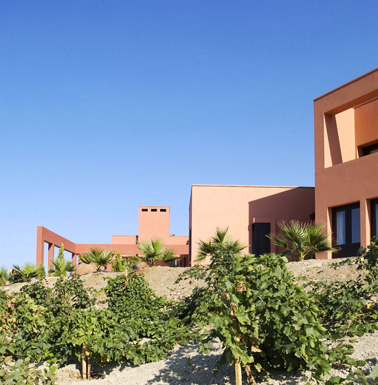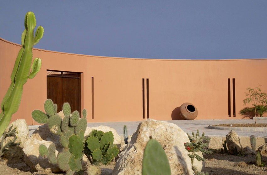 To avoid using any energy-sapping air conditioning units, a simple version of 'massive construction' was used throughout the buildings to minimise heat gain. Carefully placed windows and wind towers also helped by allowing the buildings to reap the cooling effects of day and night time breezes. Along with solar heating, a grey water and sewage recycling system were also installed to conserve water and make the property even more sustainable.