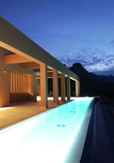 We created a series of terraces and inward looking south-facing courtyards to make the most of the sea views and mountain range. This also allowed the family and their guests to follow the sun during the winter months or to sit under shaded balconies during the summer heat. Throughout the houses, shielded and screened openings were used to give a variety of framed and open views, and provide diffused daylight throughout the day.