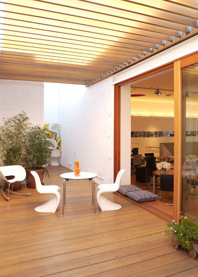 Originally built in the 1940s as an Air Force recruiting centre, the Vitra site was spread over two rather dilapidated, dark buildings, both of which were built on different levels. Separated outside by a rubbish strewn backyard, inside, the space felt cramped and uninviting due to a series of partitioned rooms and suspended ceilings.