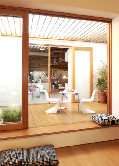 After clearing away the rubbish, the side alley was landscaped into a lush garden whilst the narrow corridor which divided the buildings was inverted to form a trellised patio, filled with dappled light. We then made large window openings to both front and rear buildings to lead onto the patio and create a natural flow between the spaces. Finally, a new shop window and entrance doors were installed to create an intriguing presence on the street to entice and encourage passers by to pop in.
